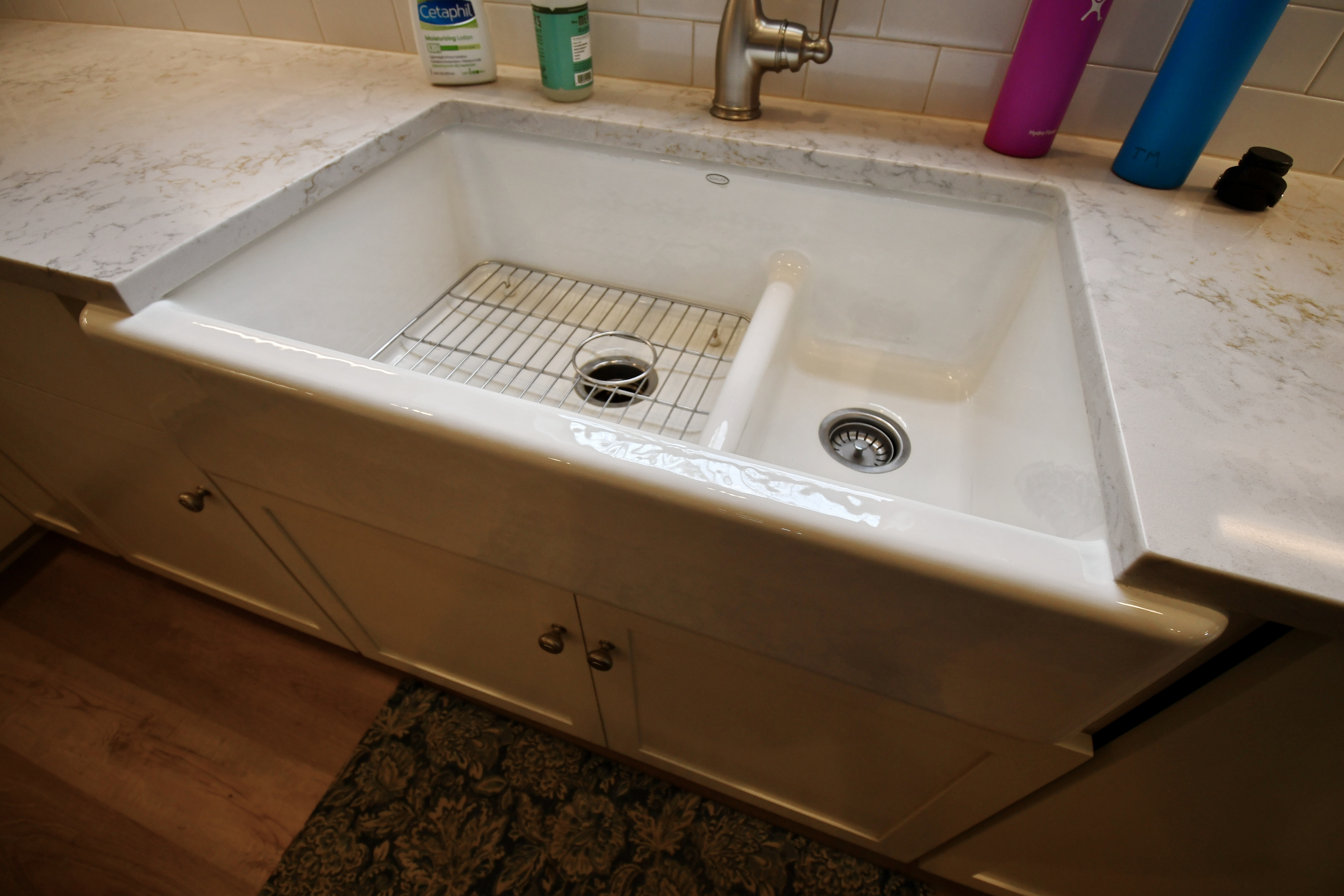 TECI gave this 1990's kitchen & family room a major update. Custom cabinetry in both painted & stained finishes are topped with low-maintenance Silestone quartz counters. Architectural panels were installed on the new refrigerator. Storage is not a problem with the wall of pantry cabinets. A partial wall between the family room & kitchen was removed and a custom wall cabinet was installed to house wine glasses & bottles. New luxury vinyl plank flooring was installed throughout the kitchen, family room, 1/2 bath & laundry rooms creating a cohesive feel throughout the whole area. In addition to the flooring, the 1/2 bath got a face-lift with a new vanity, mirror & lighting.
